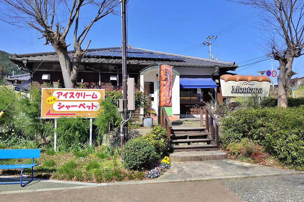 道の駅のパン屋さん・ベーカリー巡りのきっかけとなったのが「道の駅 なかやま」[ツーリングマップル中国・四国 P.75 G-7]の「パン工房モンタナ」。 モーニングを食べそこなって、ちょっぴり小腹がすいた時に立ち寄ったのがここ。こんな所に、パン屋さんがあったのね、と入ってみると美味しそうなパンが沢山。また、道の駅の営業時間外の、朝早くから営業しているパン屋さんも多いのでモーニングを兼ねて訪ねるのも面白そうだなとも良い気づきにもなりました