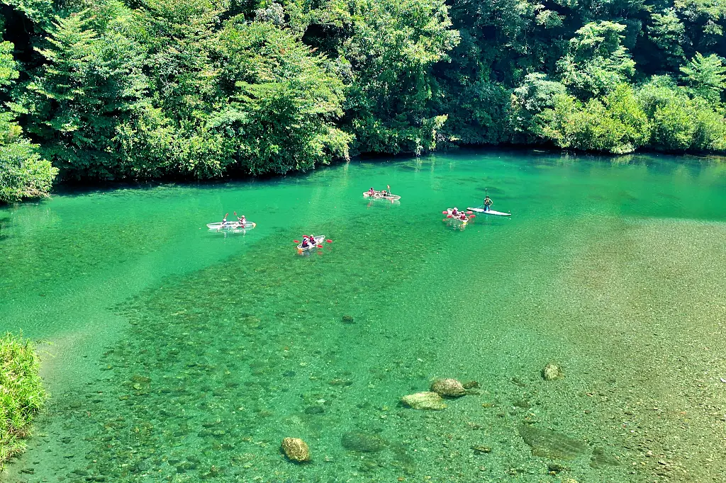 走行中に目に入った澄んだ水面の風景に思わずUターンして写真を撮った池川大橋からの仁淀川の支流、土居川の景色。クリスタルカヤックがとても涼しげでした