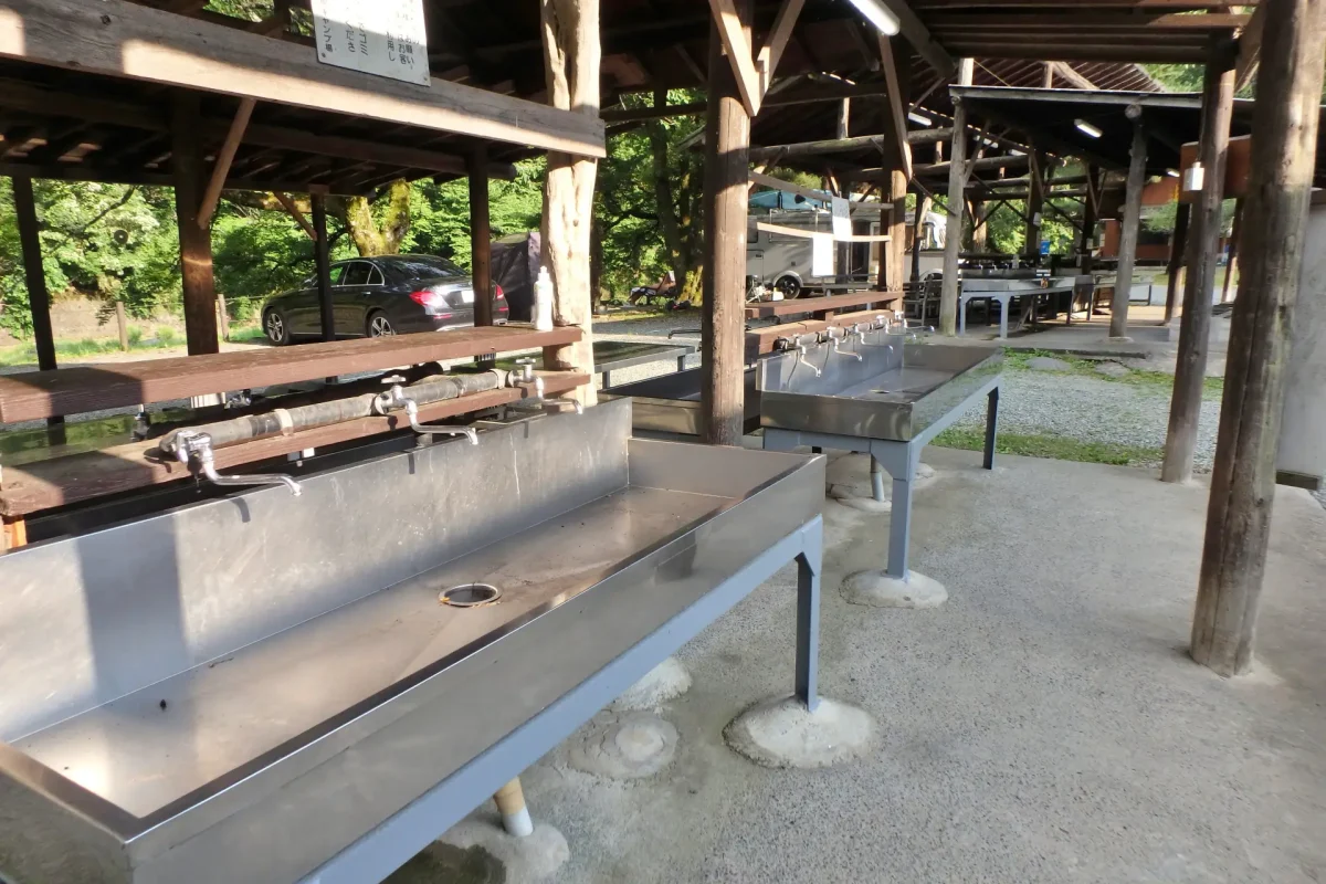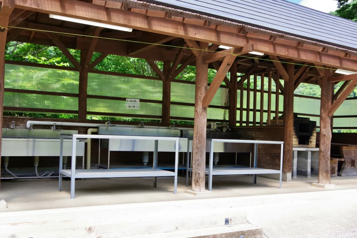 炊事場はグリーンサイト側に1カ所、ムーンサイト側に1カ所、管理棟側のバンガローエリアに3カ所ある。一部給湯器付き。かまどもあり、無料で使えるピザ窯も設置されている。