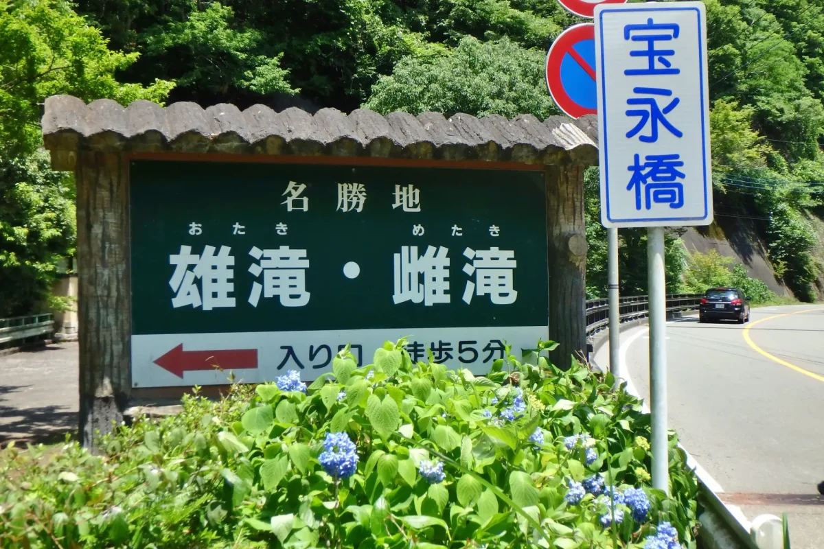 道志みちを相模原から山中湖方面へ向かうと紅椿の湯の先に「雄滝・雌滝」の大きな看板がある。道志みちを走るたびに気になっていたのだが、今回初めてその滝を見に行ってきた。