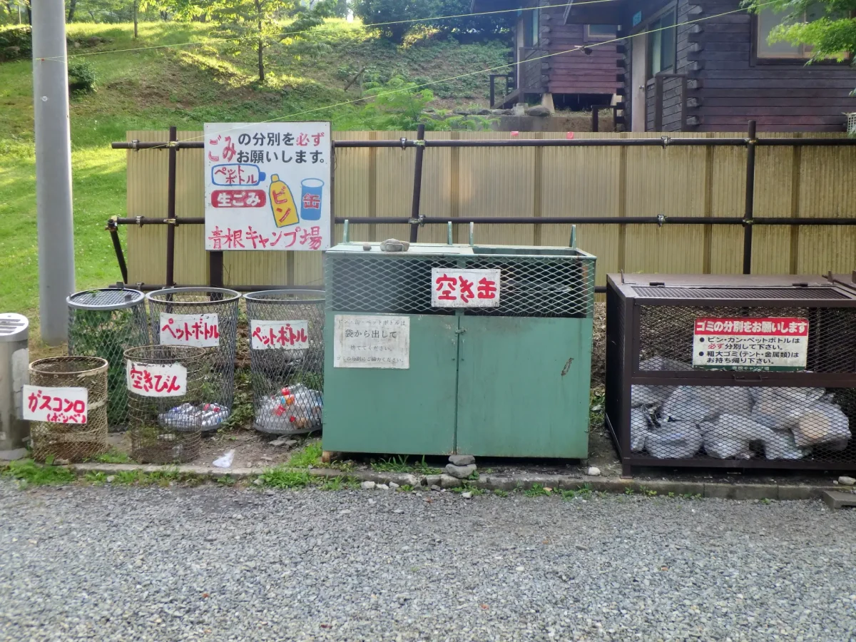 燃えるごみ/ビン/缶/ガス缶/ペットボトルに分別し、指定のゴミ捨て場へ。灰、消し炭はゴミ捨て場にあるドラム缶へ。