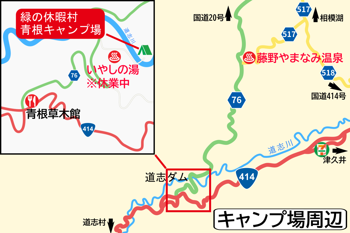 <周辺情報> ( )内はキャンプ場からの距離