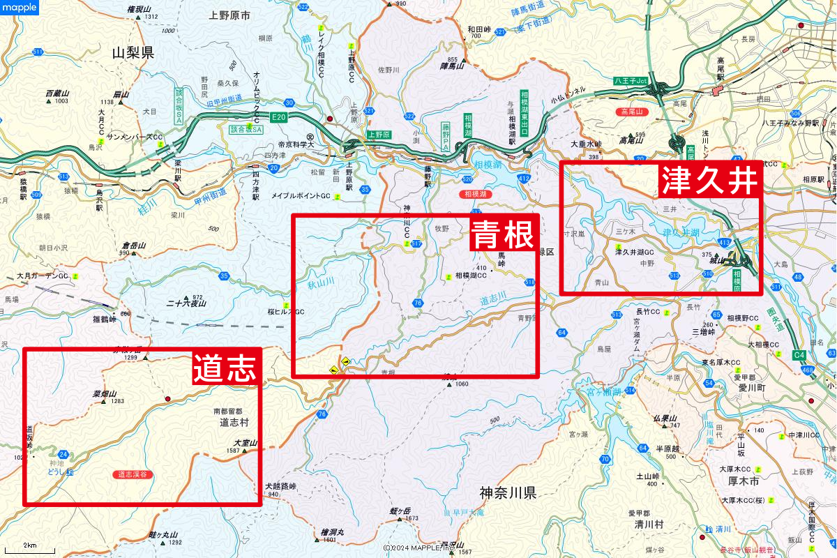 山梨県と神奈川県を流れる道志川沿いには数多くのキャンプ場があり、関東でも有数のキャンプ場密集エリアとなっている。
