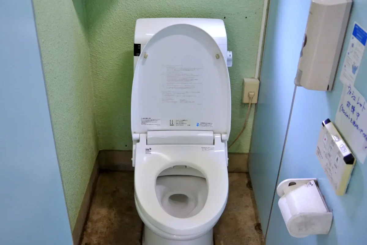 トイレはキャンプエリアに3カ所、管理棟側のバンガローエリアに2カ所あり、すべて男女別水洗トイレで、個室は温水洗浄便座。ムーンサイト側のトイレは入口にドアが付いているが、そのほかのトイレは入口ドアがないので、夏は虫が気になるかもしれない。