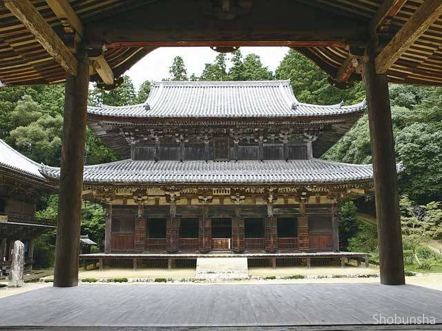 参道までは、麓からロープウエイでアクセスできますが、山上駅から先はすべて徒歩です。仁王門からしばらく参道を登ると突如として摩尼殿の伽藍が現れ、その荘厳さと大きさに圧倒されますが、それだけではありません。さらに行くと大講堂と食堂(じきどう)、常行堂がコの字に囲む空間があって、その静謐な空気に思わず気が引き締まります。