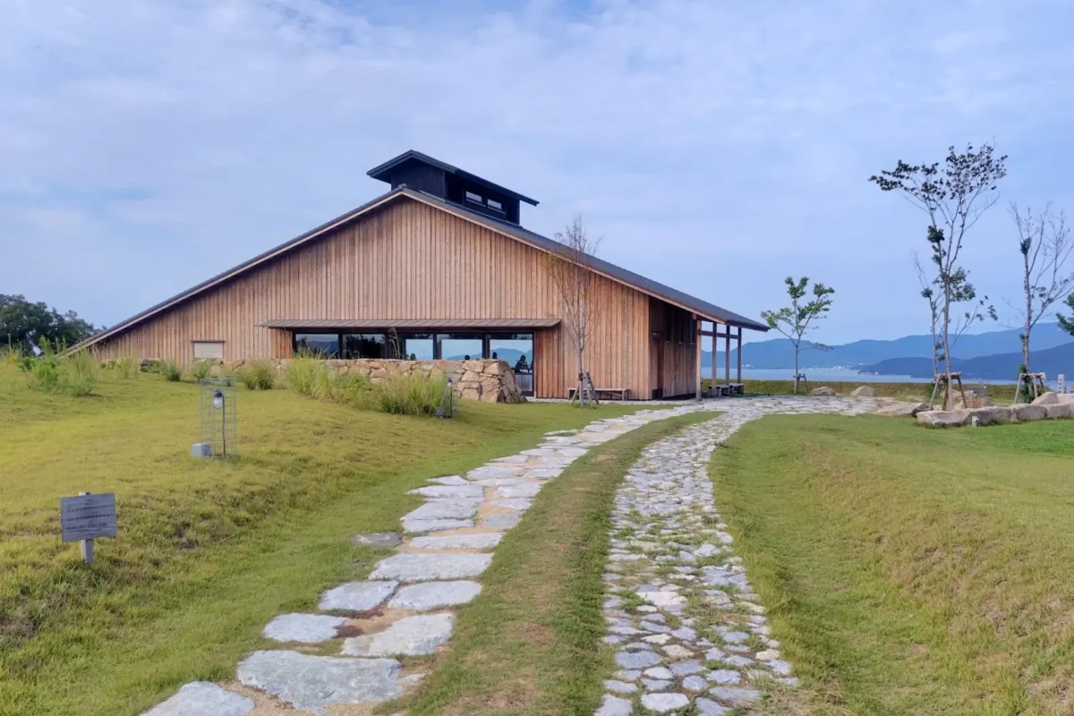 香川県さぬき市の「大串自然公園」の再整備で、2024年にオープンした「時の納屋」。ランチやスイーツがいただける店で、大きな窓からは小豆島や瀬戸内の風景が広がる、ゆったりと過ごせる素敵な店内です。