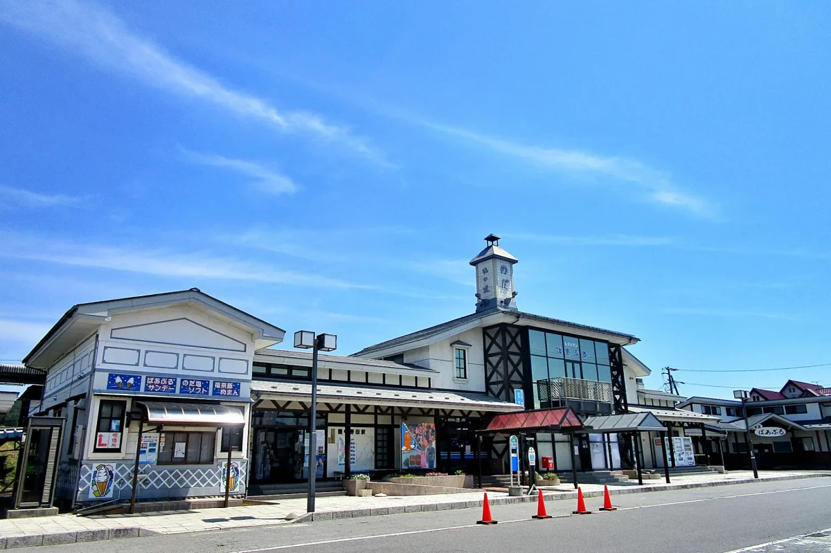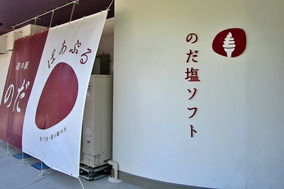 ここの名物「のだ塩ソフト」は健在で、売場は広く大きくなった。岩手県野田村特産の海水を煮詰めた「のだ塩」を使ったソフトクリームで、一度食べるとまた食べたくなる。以前の「道の駅 のだ」は三陸鉄道の「陸中野田駅」だけになったが、かつて野田塩を運んだ牛方の「牛方像」はそのまま残されている。一見の価値あり!