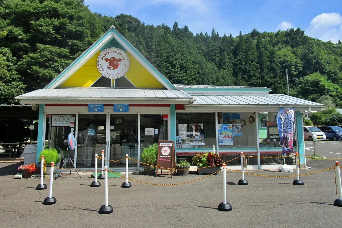 「まきばのジャージー」は国道115号沿いにある人気のショップ。相馬~福島間の東北中央道(無料)の完成で国道115号の交通量は激減したが、客足はほとんど減っていない。ジャージー種の牛乳から作られるソフトクリームは濃厚。これが人気の秘密。敷地内には霊山のハイキングコースの案内板が立っている。ここから巨岩奇岩で知られる霊山の登山口は近い。