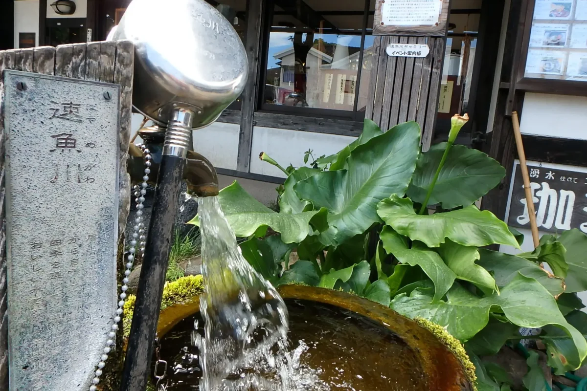 水の都とも言われる「島原」は、1日の湧水量が22tもあると言われていて、中心街でも10カ所以上の湧水スポットがあるほど。その中でもお気に入りは、「速魚川(はやめがわ)の湧水」。ここは金物屋&茶房で、敷地内に普賢岳の伏流水が地下110mより毎分150ℓ自噴しており、その湧水は自由に飲んだり持ち帰ったり出きます。もちろん、店内すべての料理に使用していて、湧水の恵みを味わうこともできます。