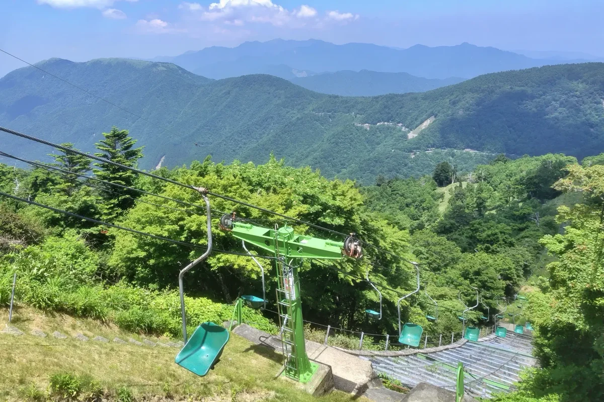 登山口のひとつ、国道438号沿いの「見ノ越(みのこし)」からは登山リフトが運行されていて、標高1750mの西島駅まで15分。ここから高低差約1000m、40分ほどの登山で山頂に立つことができる。