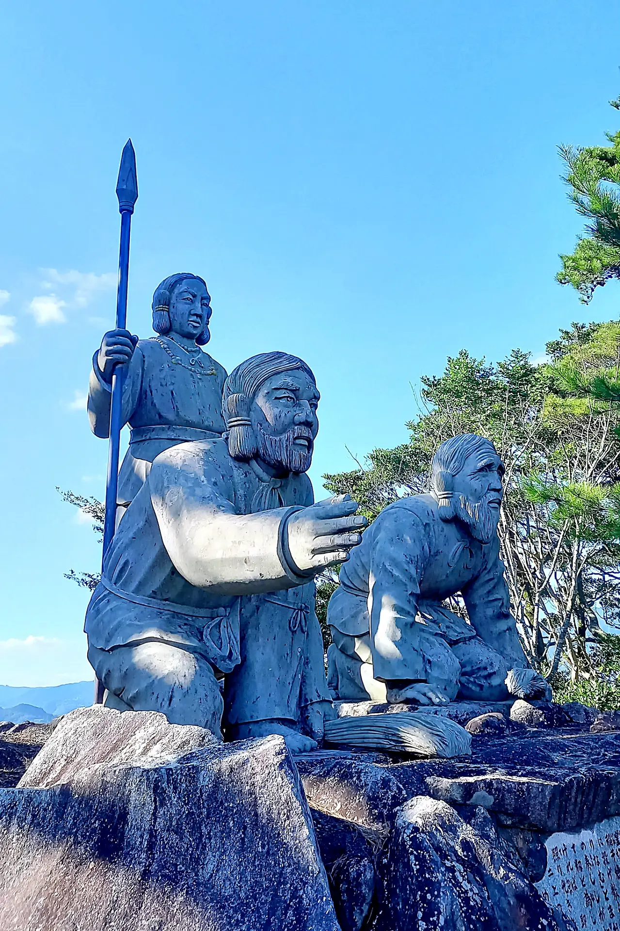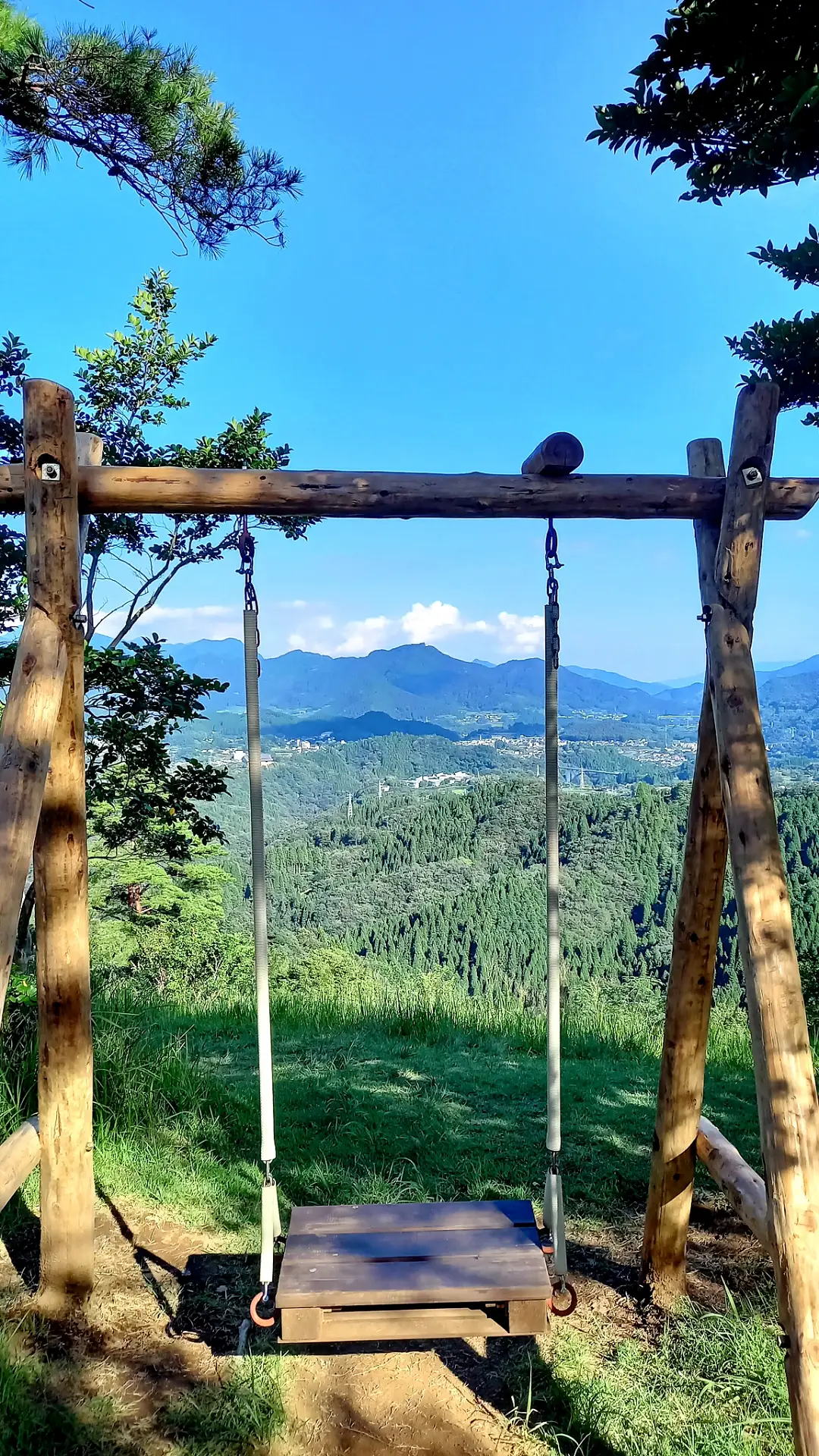 また、この地は神武天皇の孫が国見をしたという伝説の地として伝わっていて、その神話にちなんだ石像もあり、独特の雰囲気を醸していて、なんかパワーもらえてるような清々しい気持ちになれるかも!ブランコに揺られてボーっと過ごすのもおすすめです。