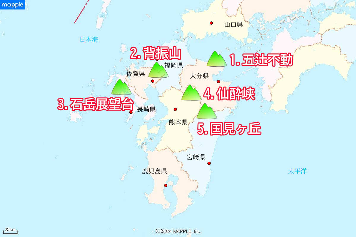 今回は、そんな「山の風景」が見られるおすすめスポットを、『ツーリングマップル九州沖縄』掲載エリアから、5箇所紹介します。早速見ていきましょう!