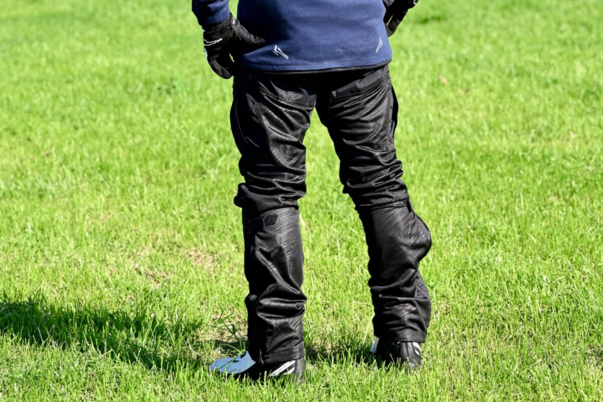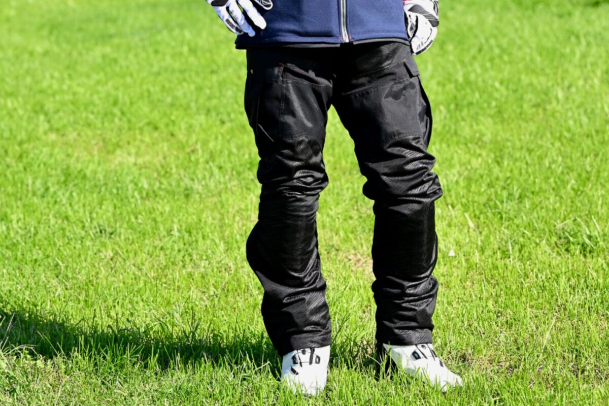 メリット:メッシュパンツからオールシーズン対応まで様々なツーリングシーンで使えるモデルが豊富。抗菌防臭とか、撥水加工とかさまざまな特殊効果が付与されていることも。形状も自由度が高く、乗車姿勢を念頭に作られていたり、総じてライディングに特化された工夫が随所に見られます。