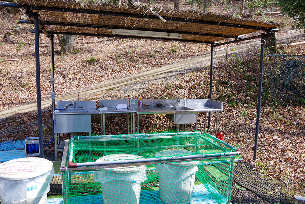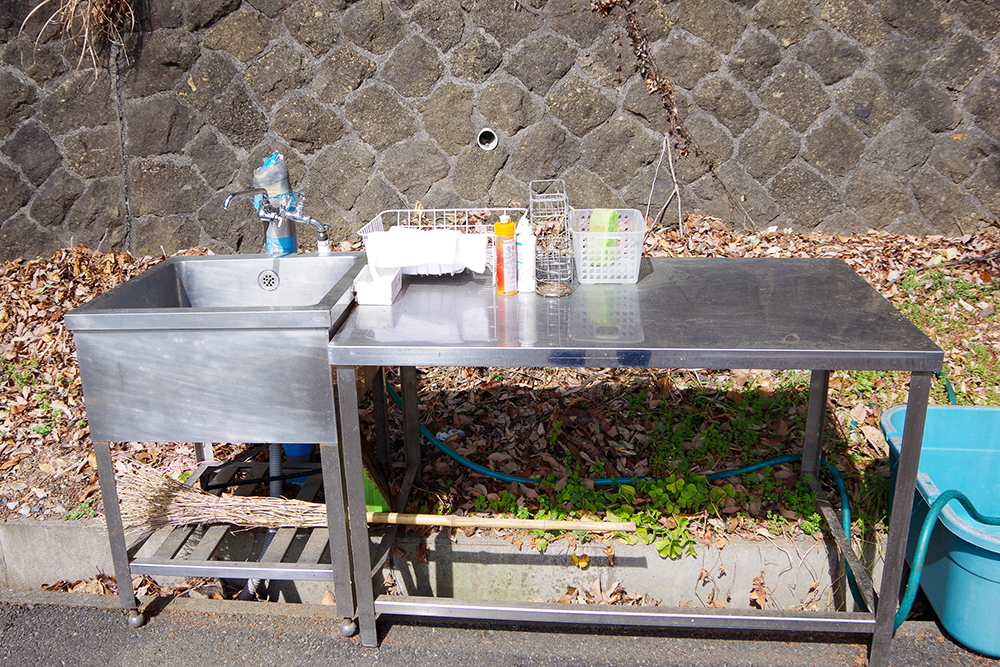 ソロキャンプ場には駐車場に炊事場と簡易トイレが各1箇所。オートキャンプ場には屋根(日除け)付きの炊事場と簡易トイレがある。それぞれのキャンプ場にはゴミ捨て場と灰捨て場もある。
