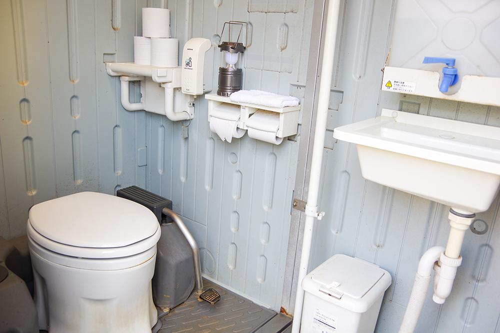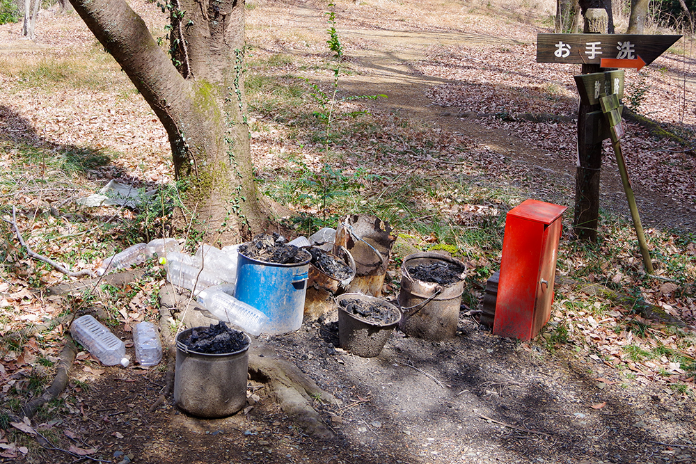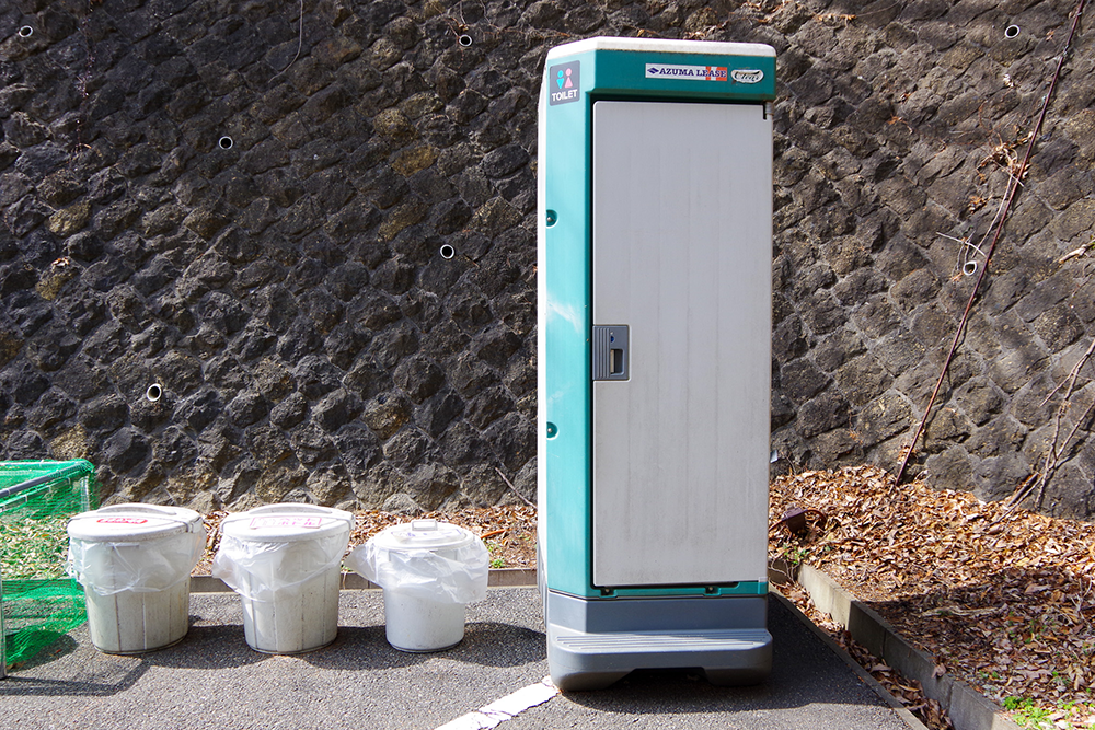 簡易トイレと水場はサイトではなく駐車場にある。つまり、給水やトイレのたびに階段を上り下りすることになる。ここはどちらかといえば体育会系や山屋さん系ソロキャンプ場といえるだろう。