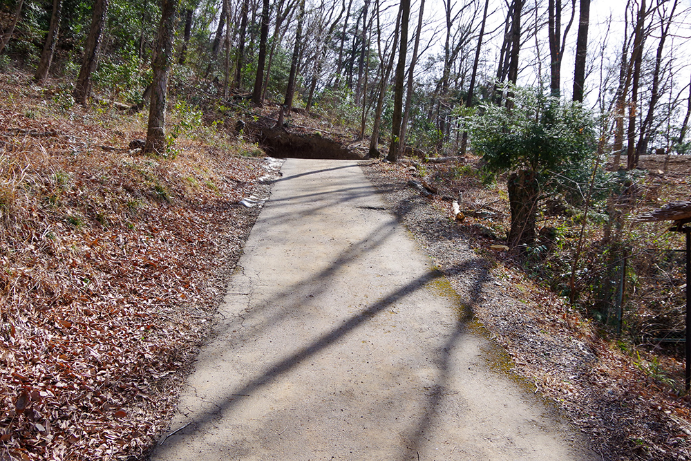 黒山三滝入口には町営の無料駐車場があり、そこから歩いて三滝へと向かう。緩い坂道を上がって行くと右側に迎え滝という看板がある。見てみるとそれは落ち込みのような小さな滝で、三滝とは別物。