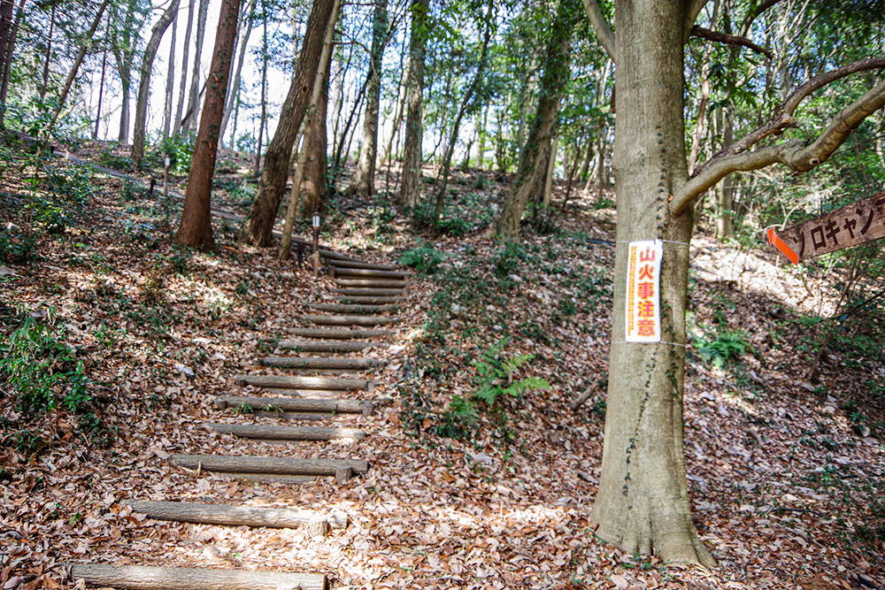 ソロキャンプ場は高台にあり、定員は20人。適度に木立があり多少起伏もあるので設営スペースはある程度限られるようだ。駐車場は本館の裏側にある第3駐車場を利用するが、そこからソロキャンプ場のサイトまではそこそこ急な階段を上って行かなければならない。もちろんカートも使えないので荷物は人力で運ぶしかない。当然のことながら荷物が多いと何往復もすることになる。ここではテン泊登山の装備がベストかもしれない。