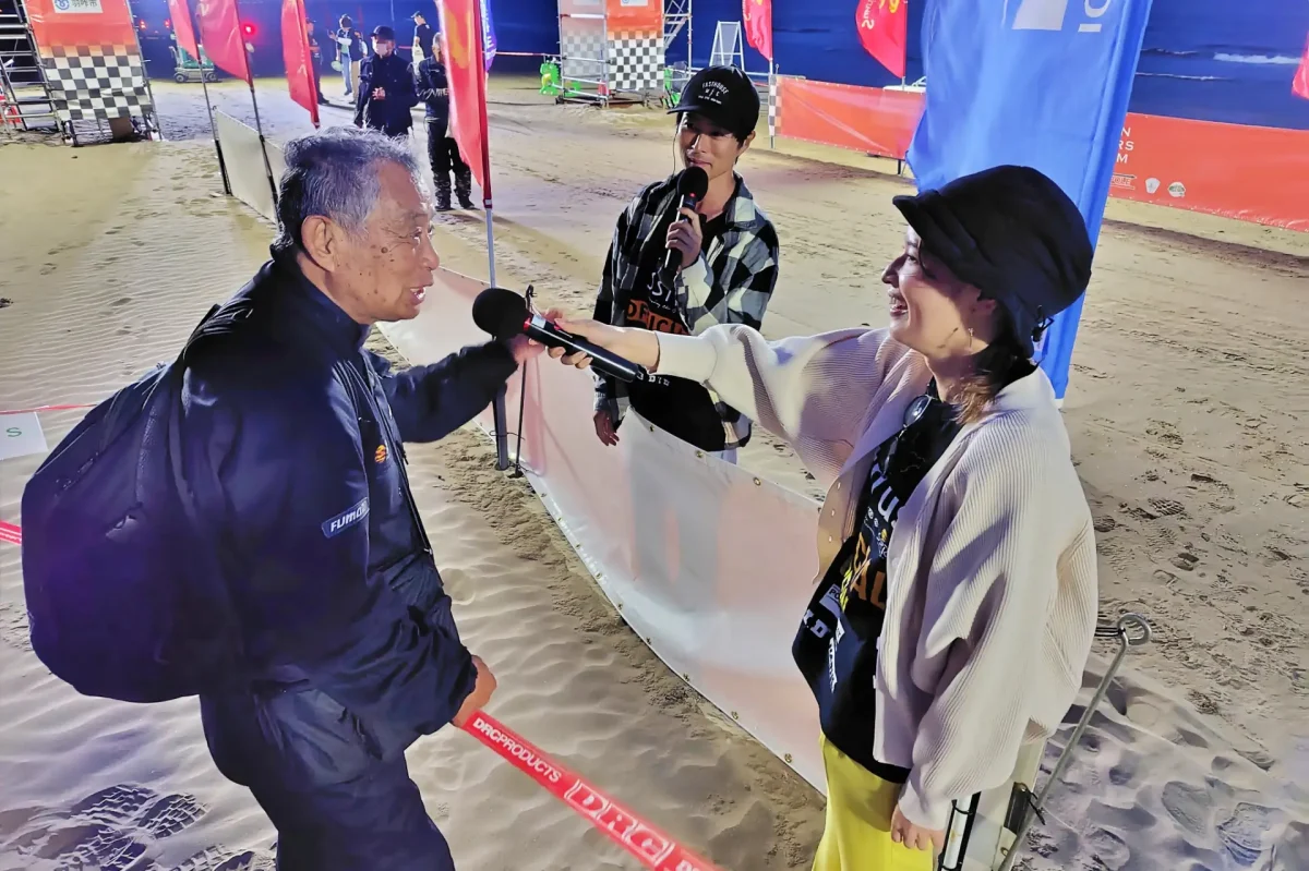 インタビューされるカソリさん。「SSTRは何回目ですか?」「ええ、先週も走って2025年2回目のGOALです」