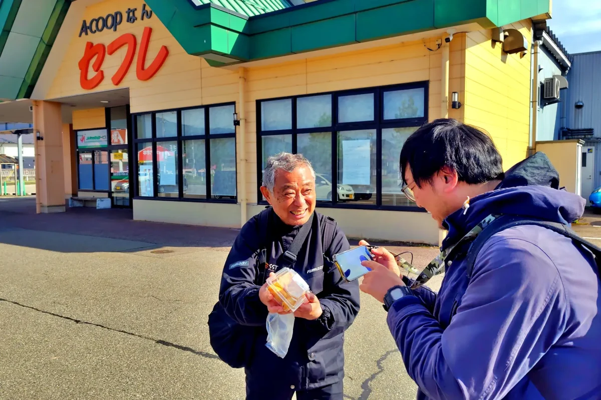 日本海の眺めを楽しみながら、途中「道の駅 うみてらす名立」で、ポイントだけ獲得して、午後12時58分、「道の駅 マリンドリーム能生(のう)」に到着。この駅は、完走に必要なもう一つの条件、「指定能登半島地震被災地応援ポイント」に指定されています。「立ち寄り箇所」のノルマはここでクリアしたので、あとはポイント数が「15」に達すれば、完走条件達成となります。