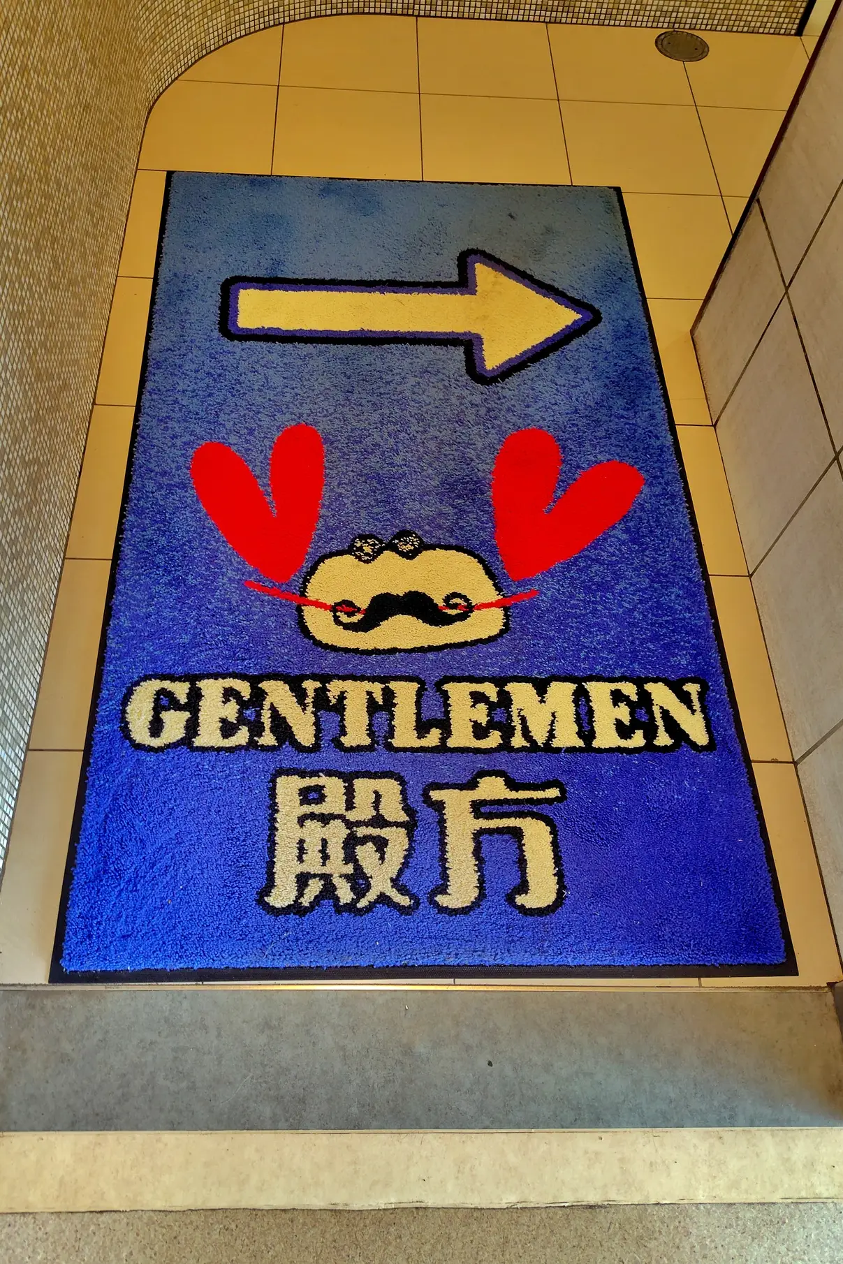 駅内はとにかくカニ尽くし。トイレ入り口のマットにも「カニ」