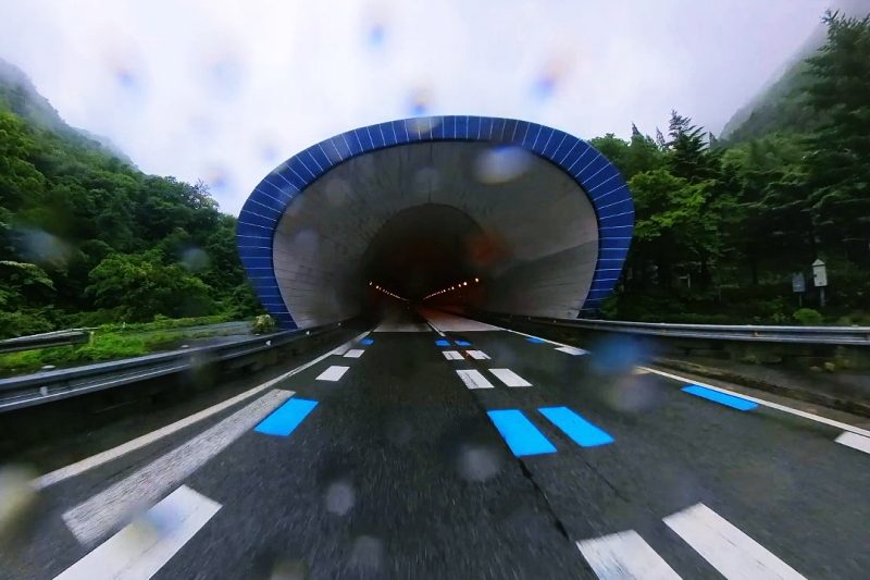 じつに個性的な関越トンネルの入口。約10kmのトンネルを抜けると新潟県ですが、天気は果たして…