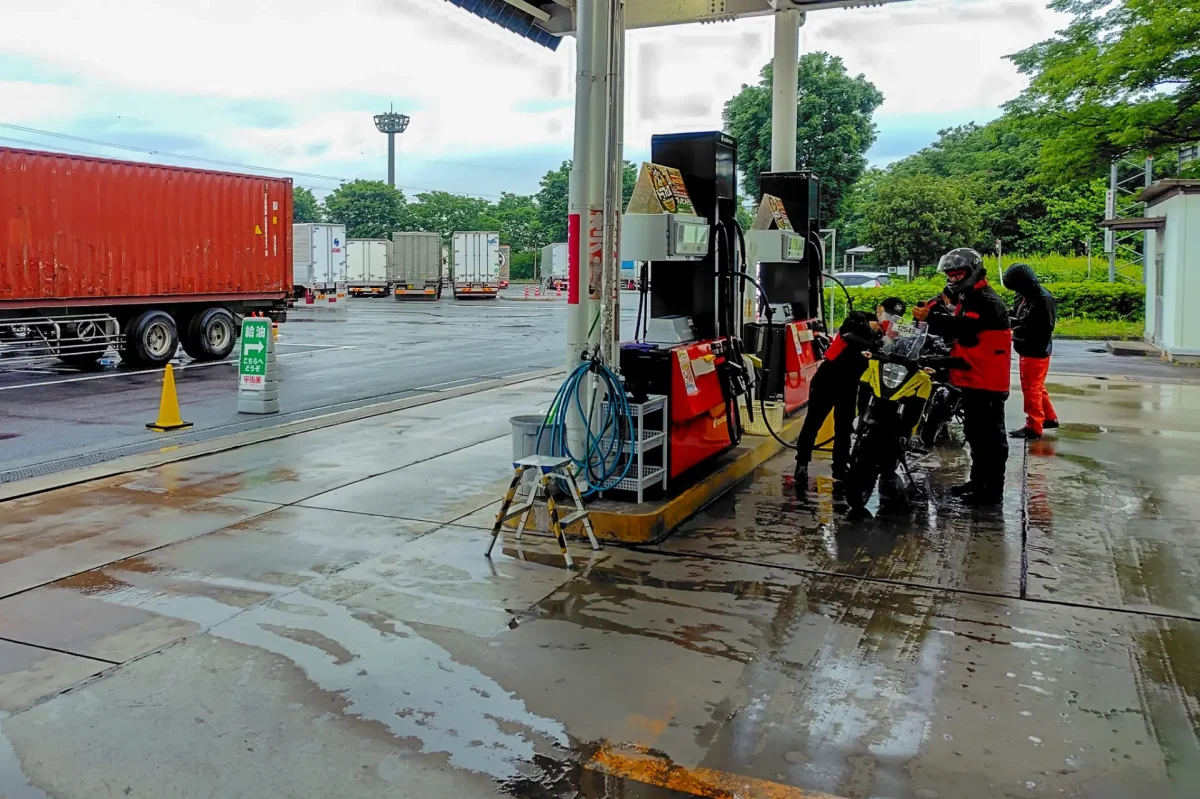 高坂SAで給油して、3人の足並みを揃えます。給油のタイミングがずれると時間ロスになりますからね
