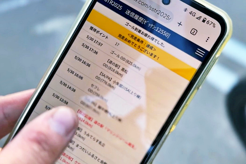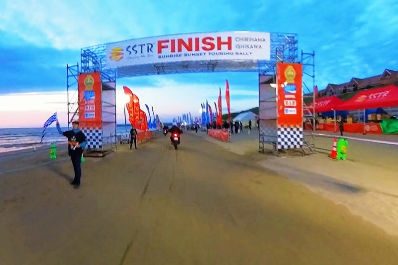 GOALゲートを通過したら、駐車場にバイクを止めて、浜の受付で「完走条件の達成」の画面を見せて、フィニッシャーズバッジを受け取ります。これで、大磯港を出て、約13時間の「SSTR2025」が終わりました。