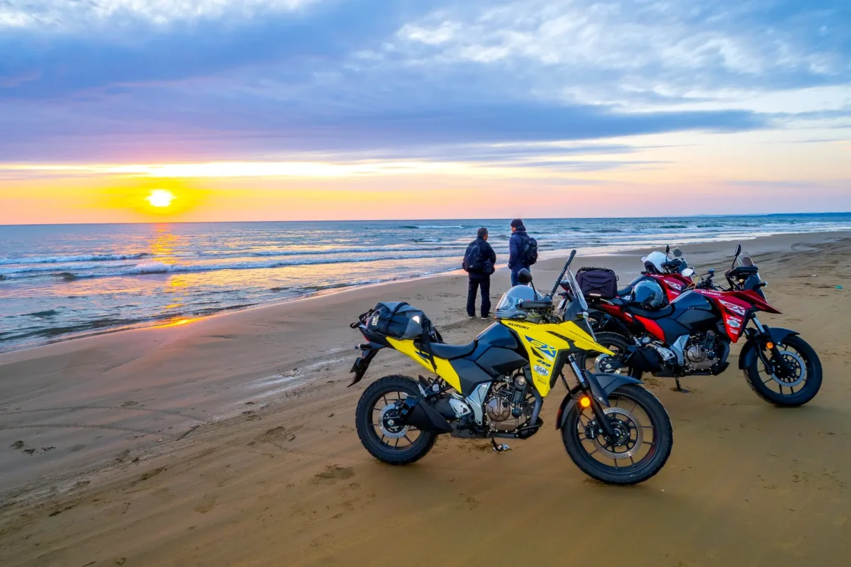 今年のSSTRはこちらの「Vストローム250SX」で参戦。マスキさんも同車両で、3台の「Vストローム250SX」で千里浜を目指します