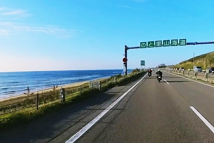 やはり、SSTRのハイライトは海を見ながら「のと里山海道」へ入る「白尾IC」ですね。しかし、こんな好天になるとは