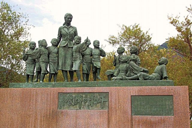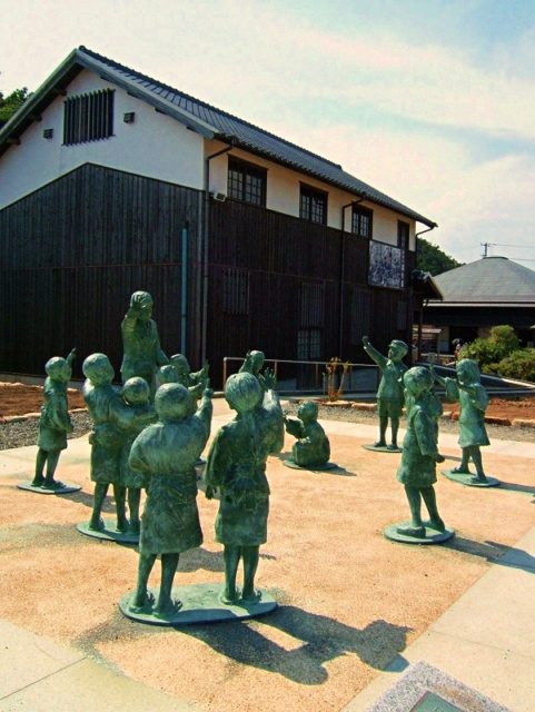 定番というかベタというか古いというか、いまさら感アリアリですが、小豆島といえば、やっぱり「二十四の瞳」。ほかにも映画やドラマの舞台になっていますが、知名度では文句なく、「二十四の瞳」でしょう。土庄港(とのしょうこう)近くには、大石先生と12人の子供たちをモデルした、「平和の群像」も建っているくらいです。
