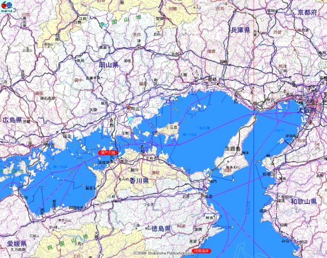 さて、現在の小豆島の紹介です。瀬戸内海に浮かぶ島としては淡路島に次いで2番目に大きく、島の一周は100キロほど。鳴門、明石のどちらからも陸路で繋がった淡路島と違って、フェリーでしか行けないというのも、旅気分を盛り上げてくれます。