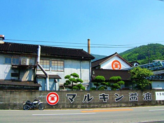 また、小豆島は日本の「醤油の4大生産地」でもあります(他は千葉県の野田・銚子、兵庫県の龍野)。映画村手前の坂手地区には、醤油蔵や佃煮工場が並ぶ「醤(ひしお)の郷」があります。明治の最盛期には醤油醸造所が400軒以上、現在でも20軒以上も残る醤油生産地で、登録有形文化財の「マルキン醤油記念館」ほか、黒壁の古い建物が並ぶ一画は「近代化産業遺産」にも指定されています。