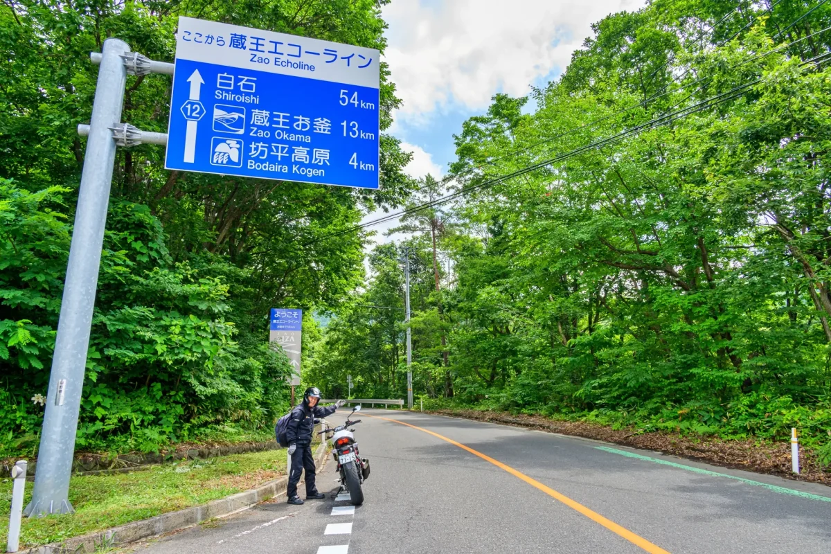 山形県の上山から県道12号で「蔵王エコーライン」へ。「蔵王温泉」に通じる県道53号との分岐を過ぎると「蔵王エコーライン」になる。山岳ハイウェイのワインディングルートを登りつめると県境の「刈田峠(かったとうげ)」に到着。ここから蔵王の山頂へ。リフトで登ってもいいし、有料の「蔵王ハイライン」で登ってもいい。