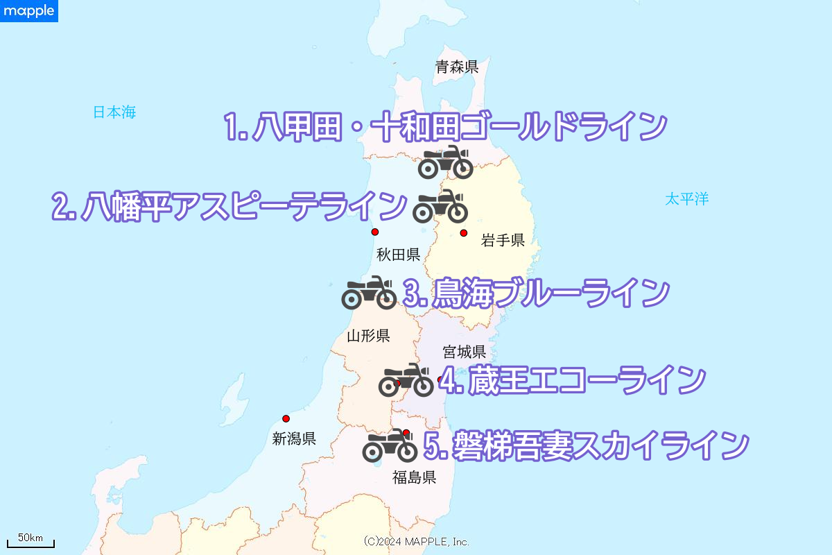 今回は、そんな場所に出会えるおすすめの「絶景道」を、『ツーリングマップル東北』掲載エリアから、5ルート紹介します。早速見ていきましょう!