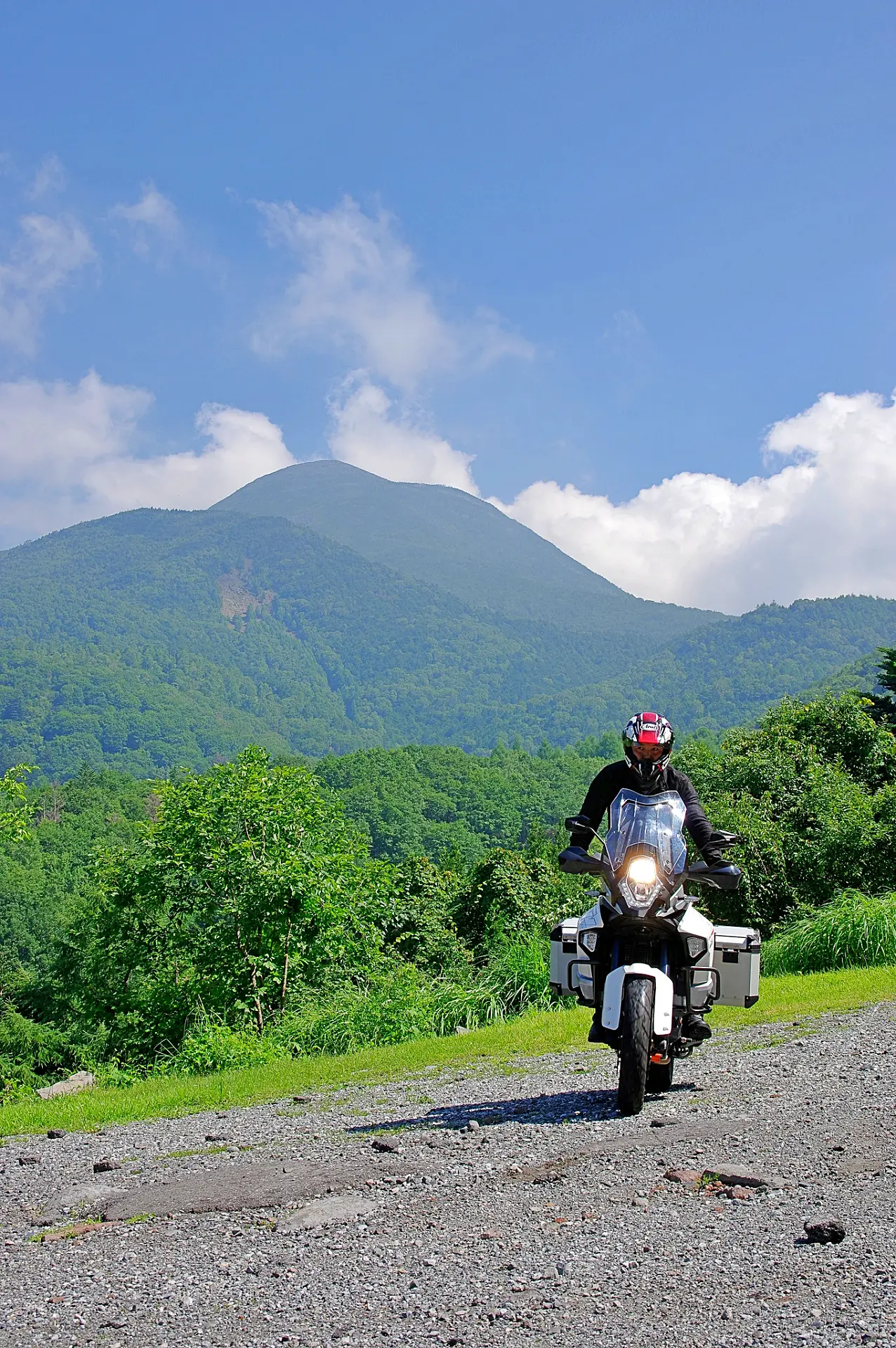 毎年、ツーリングマップルの取材で通りかかるも、なかなかその全容を現してくれない木曽の名峰御嶽山。