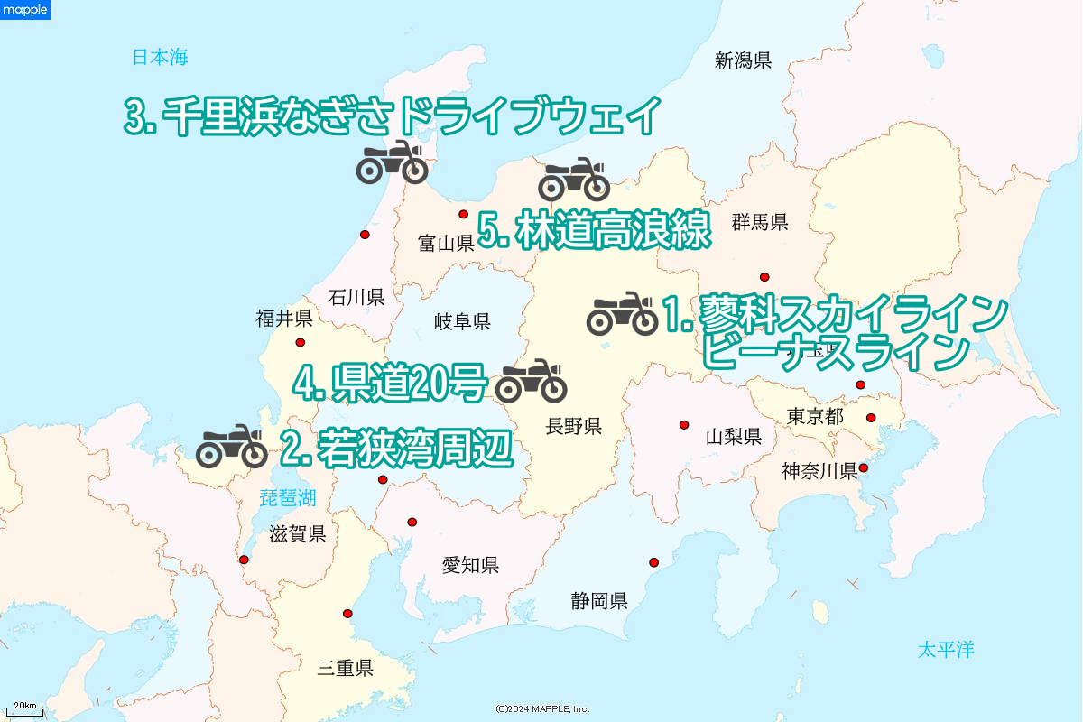 今回は、そんな場所に出会えるおすすめの「絶景道」を、『ツーリングマップル関東甲信越』掲載エリアから、5ルート紹介します。早速見ていきましょう!