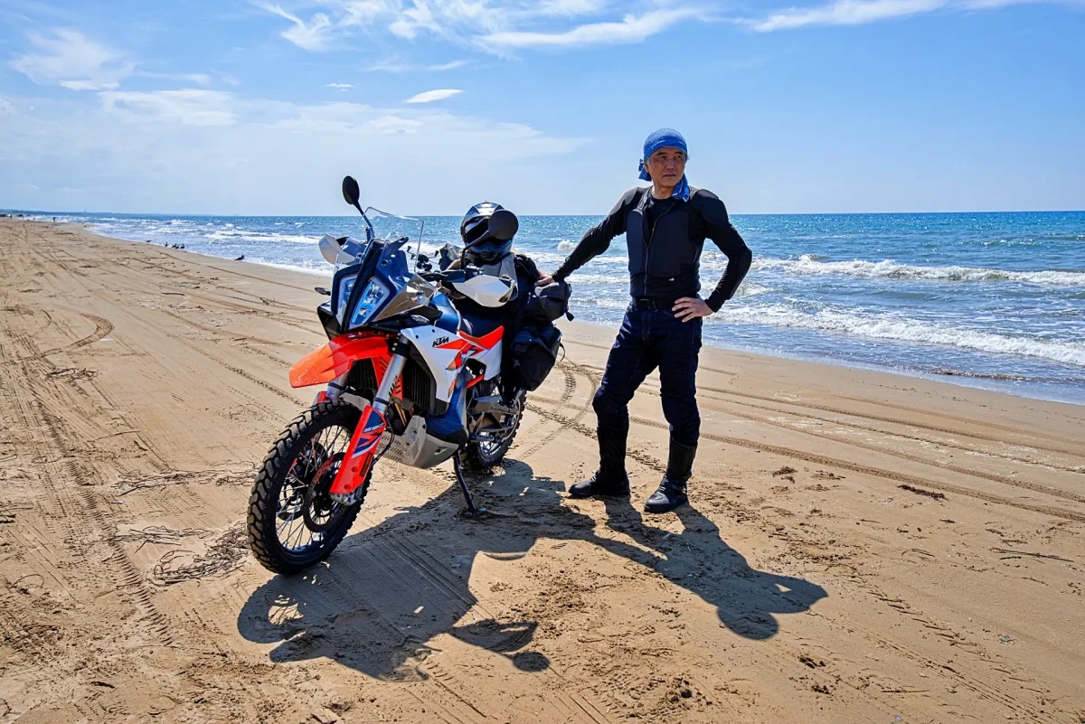 海から少し離れると、ふかふかのサンド。オフロードバイクならではのファンライド