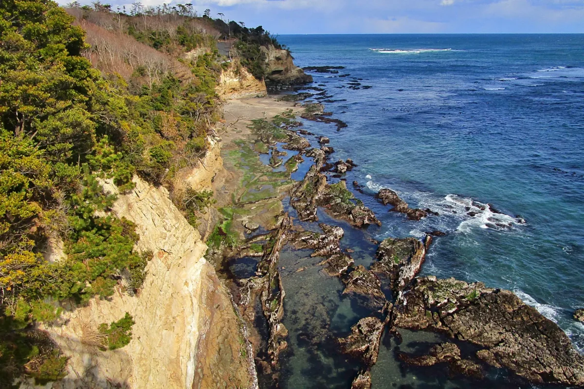 福島県の浜通りは、「岬めぐり」には最適のエリア。東北太平洋岸最南の鵜ノ子岬(うのこみさき)から北へ、竜宮岬、三崎、竜ヶ崎、合磯岬(かっそみさき)、塩屋崎、富神崎、殿上崎、天神岬、鵜ノ尾岬と岬がつづく。