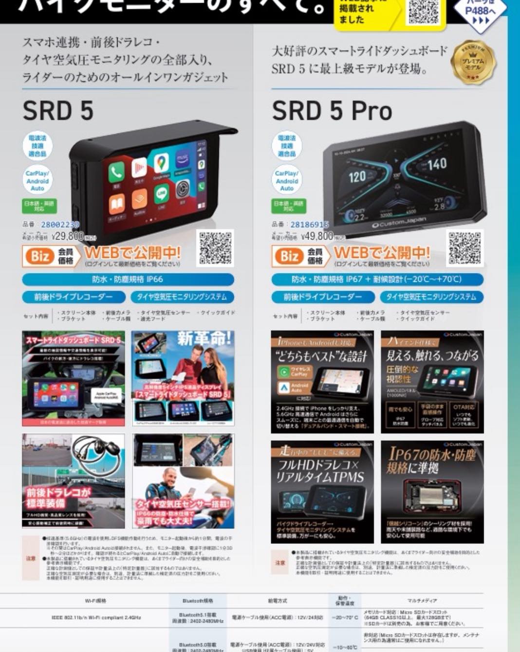 ライダーの利便性を高める実用型ガジェットを多数展示。