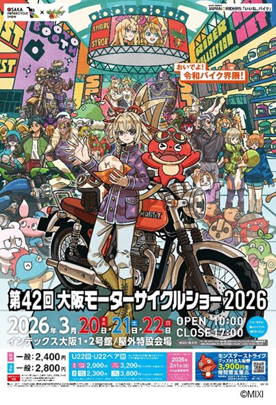 一般社団法人 日本二輪車普及安全協会は、2026年3月20日~22日の3日間、インテックス大阪で関西最大級のバイクイベント「第42回大阪モーターサイクルショー2026」を開催する。