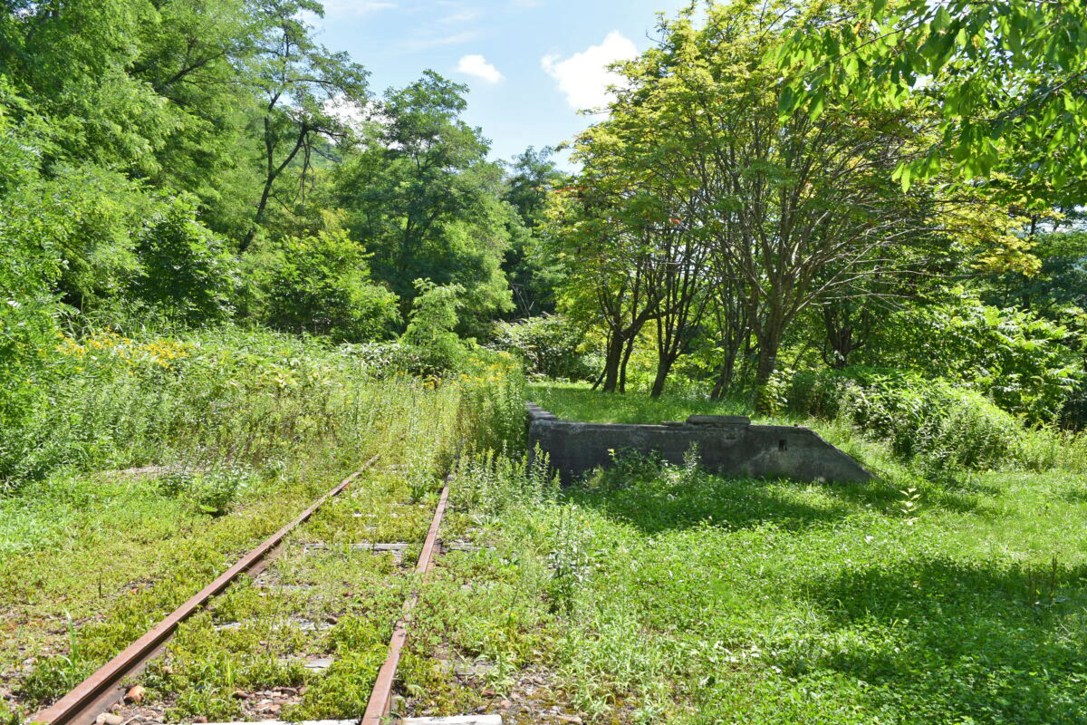 旅の終点、万字炭山駅。駅舎はすでに取り壊され、跡地は草木に飲み込まれています。かつての面影はほとんど残っておらず、セミの声だけが静かに響いていました。この先に線路はなく、炭鉱の終わりとともに鉄道もまた、静かに幕を下ろしたことを実感します。