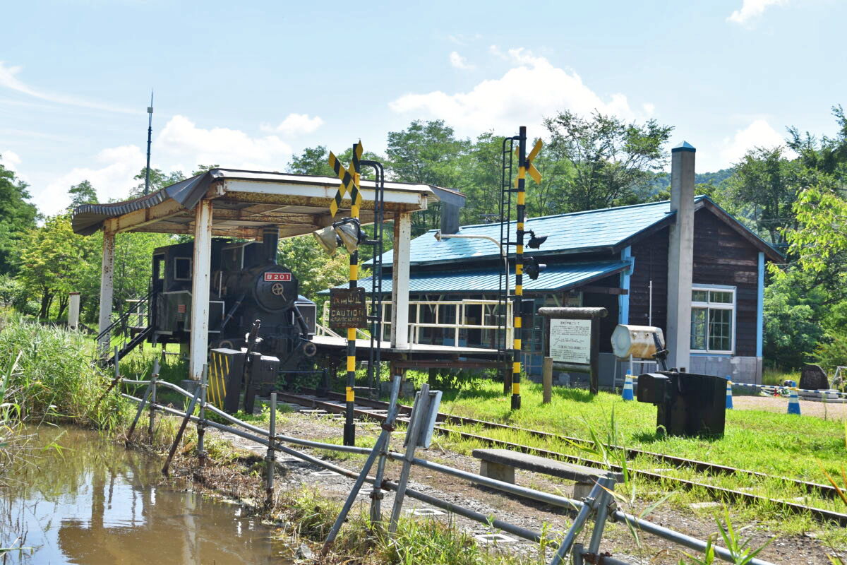 朝日駅周辺には、かつて炭鉱住宅が立ち並び、学校や商店も存在していました。今では「万字線鉄道公園」として整備され、ホームや駅名標、踏切、車止めなどが静かに保存されています。