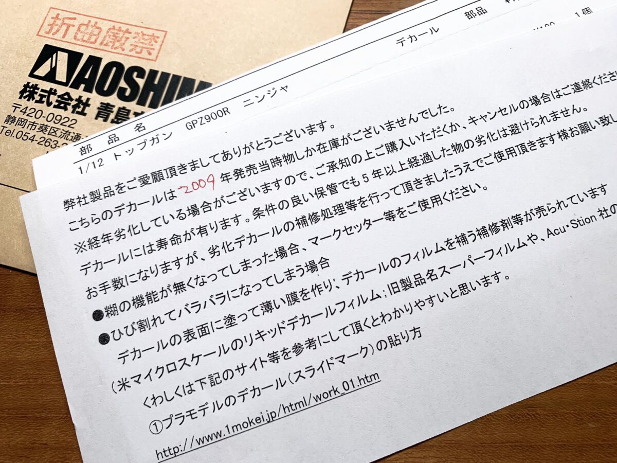 制作にあたり、かつてアオシマが発売していたトップガン仕様のデカールをオーダーしたところ、丁寧な回答が送られてきました。誠実さが嬉しいですね。