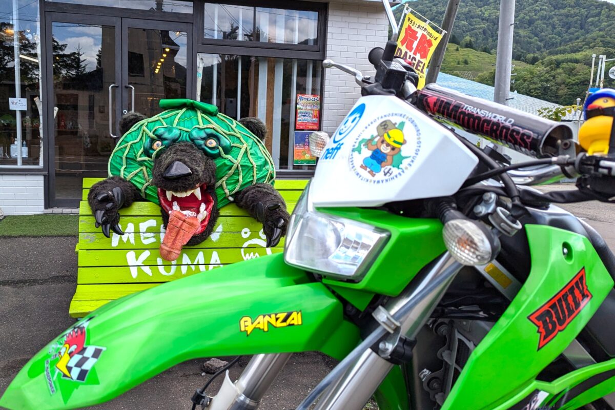 カワサキライダーにとっては、鮮やかなグリーンのメロン熊との相性抜群。かわいさと迫力が同居するその魅力は、訪れる人の記憶に深く刻まれることでしょう。道の駅メロード及びメロン熊の家などの情報は、夕張市観光サイトでご確認ください。