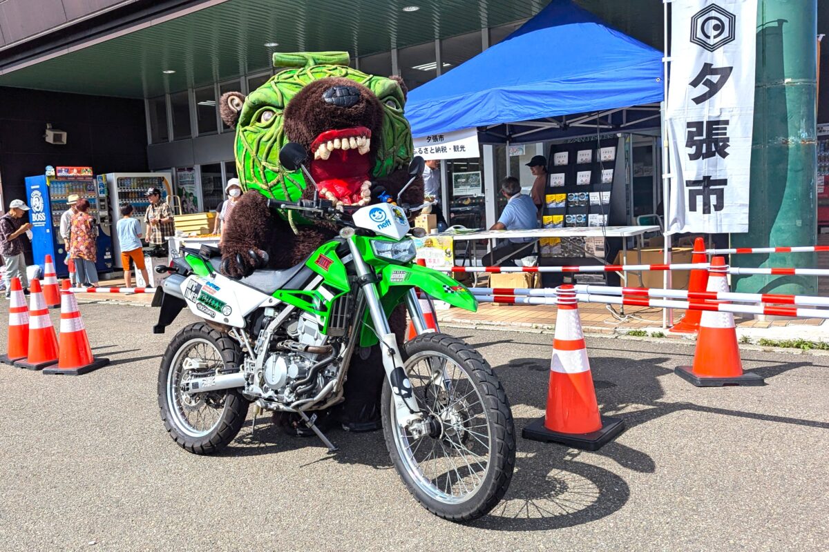 「ライムグリーン」は、カワサキを象徴するブランドカラー。そんなファンにぜひ訪れてほしいのが、夕張市の道の駅「夕張メロード」です。名物の夕張メロンに気を取られていると、“ゆるくないゆるキャラ”として知られるメロン熊が牙をむき迫ってきます。果たして恐怖を超えて、その怪物に近づけるか!