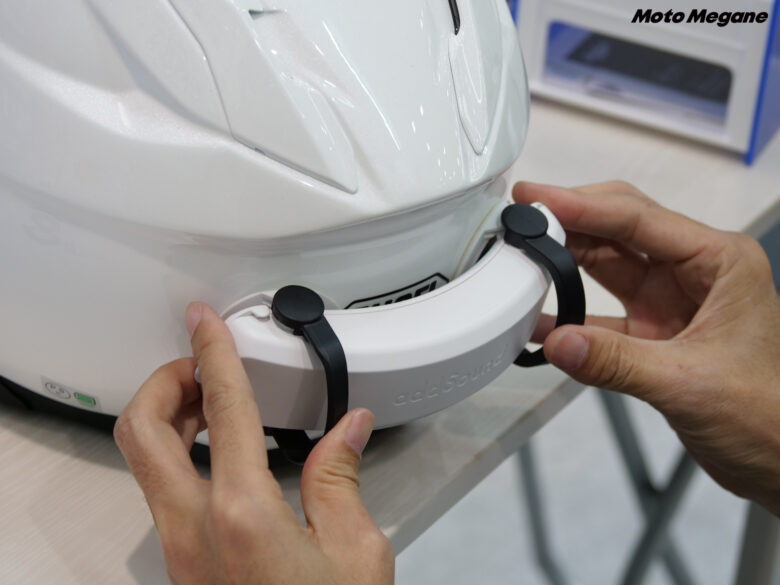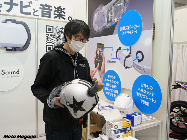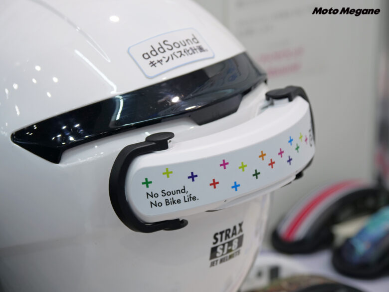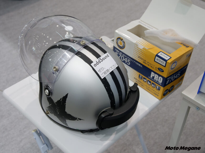 現在、オンライン販売のみとなっている「addSound」は購入するまで実際に体感できないというのが非常にネックだったポイント。東京モーターサイクルショーの出展ブースではヘルメットに装着した「addSound」を実際に視聴できるコーナーが設けられており、多くの方から好評の声が上がっていた。