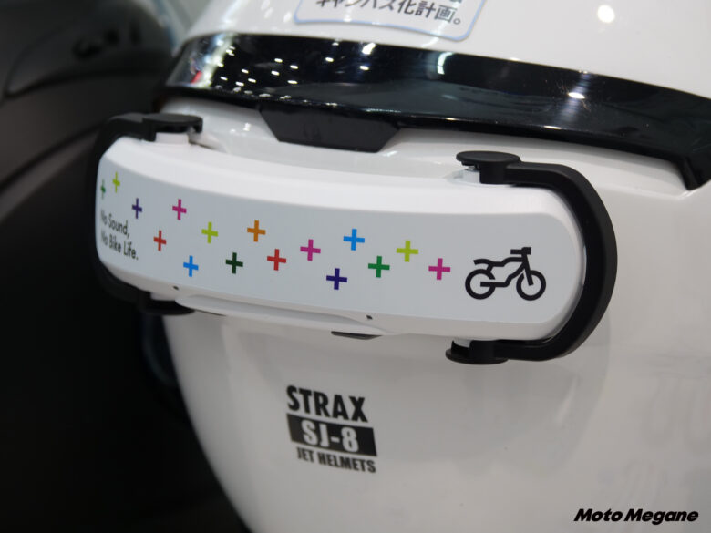今回参考出展となった「addSound キャンバス化計画」はaddSound本体にオリジナルのステッカーを貼ることによって、愛車やヘルメットなどの自分のスタイルに合わせて手軽にカスタマイズが楽しめるという商品だ。ステッカーは用意された豊富なデザインのほか、自分で好みのデザインを作ることもできるのだとか。