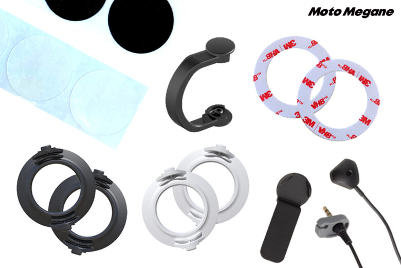 通話や音声認識機能が使えるようになる専用マイクを装着すれば利便性が格段に上がり、追加プレートを複数のヘルメットに装着しておけば気分によって気軽に本体を付け替えることもできる。万が一破損した際の交換用取り付けハンドルや専用の両面テープなど、オプションのアフターパーツも豊富に用意してあるのはありがたい。