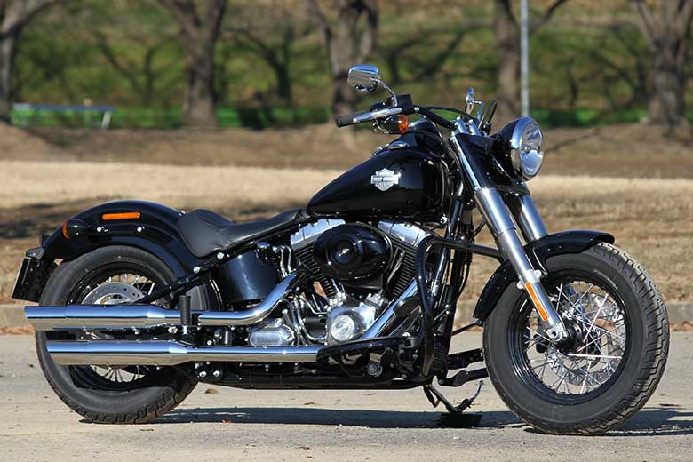 スポーツスターだとフォーティーエイトがボバーにあたりますが、トライアングルを描くソフテイルフレームで組み上げられたソフテイルスリムこそ「ザ・ボバー」と評したい一台。そしてエンジンがツインカムで、ボディそのものは軽量にまとめられながら やや重ったるいエンジンが”飛ばさない快感”を楽しませる仕上がりとなっています。乗り味はソフテイルファミリーで五指に入る快適さ。ツーリングを楽しみたい人には装備が充実しているヘリテイジソフテイルクラシック(ヘリテイジ)が向いているかもしれませんが、街乗りにも用いたい人にはこのソフテイルスリムをオススメしたいですね。