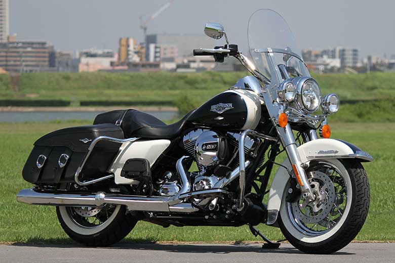 前述のウルトラと同じツーリングファミリーのモデルながら、重装備のラインナップとは打って変わってクラシカルなスタイルのツアラーです。ウルトラやロードグライドといった重量級モデルが増えてきたツーリングファミリーに残る、いやハーレーダビッドソンが”残したかった”古き良き時代のモデルと言えます。源流は1958年と、半世紀以上昔に生まれた FL デュオグライド。エンジン、フレーム、フットワークなど他モデルと遜色ない正常進化を遂げていますが、スタイルはデュオグライドそのもの。